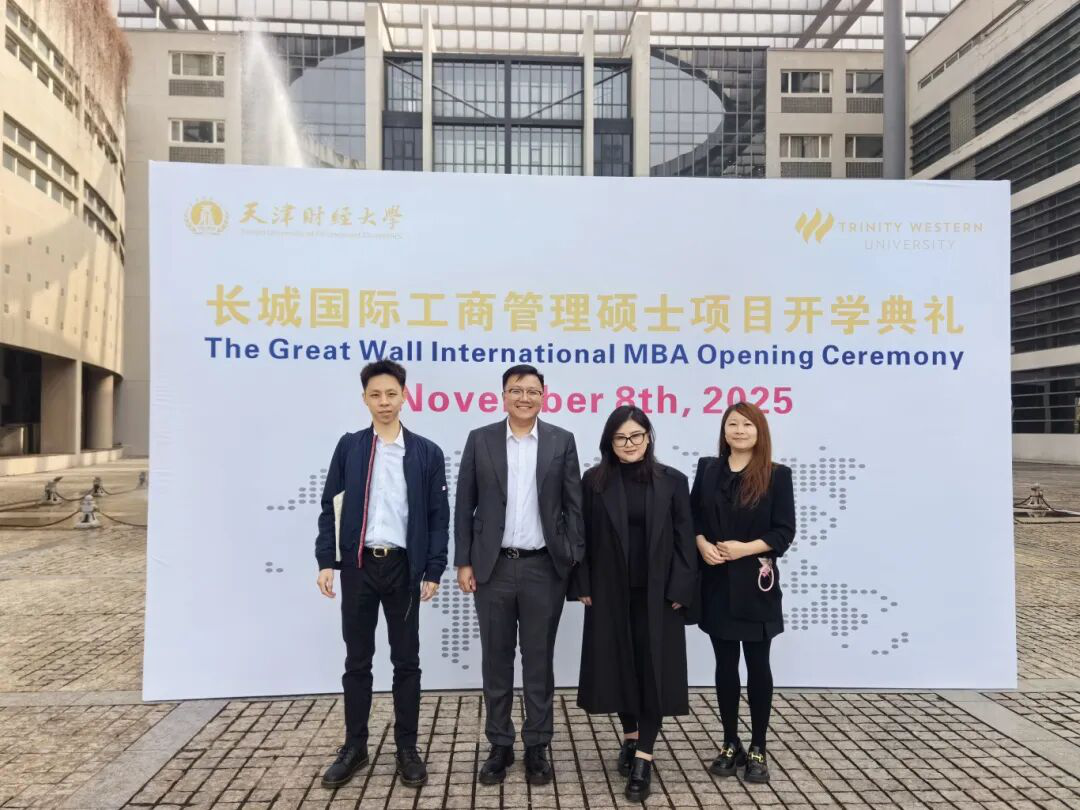 2025年的金秋,天津财经大学校园内桂香萦绕,天津财经大学与加拿大西三一大学合作举办工商管理硕士(长城国际MBA)开学典礼,现场掌声如潮。冯泰龙(Tyrone)与爱人刘鏐(Lilya)并肩端坐于新生队列中,认真聆听着院长与书记的开学致辞,眼底满是对未来的憧憬与笃定。这对在加拿大相知相守八年的夫妻,怀揣着对异国的深厚情愫与职业进阶的迫切追求,选择了长城国际MBA——这场跨越山海的“双向奔赴”,在开学典礼的庄重仪式感中,正式拉开了两人并肩求学、再启新程的序幕。